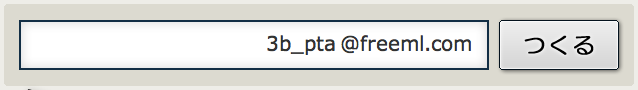 freemlのトップページで作りたいメーリングリストのメールアドレス(例:3b_pta@freeml.com)を入力し、「つくる」ボタンを押してください。